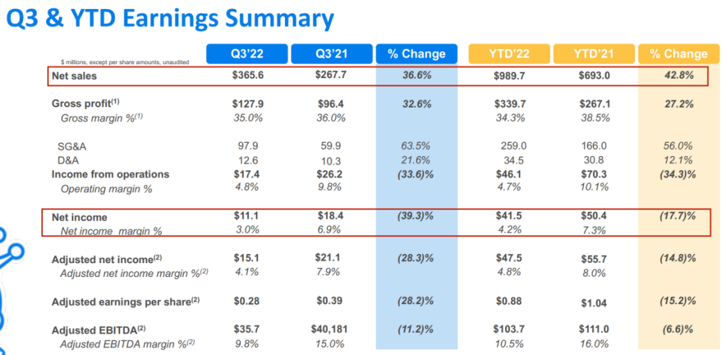 2022年Q3与前三个季度,Funko的净销售额延续了增长的势头,分别为3.66亿美元与9.9亿美元,同比增长了36.6%与42.8%。