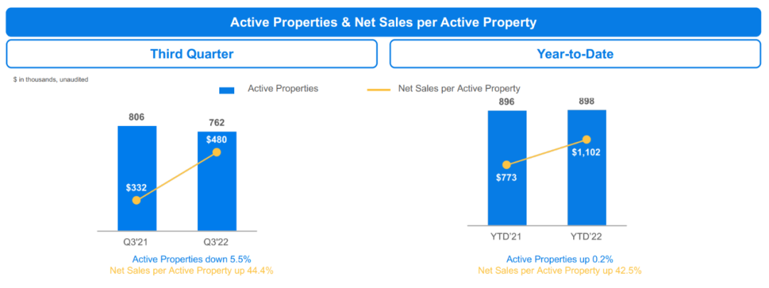 2022Q3与前三季度Funko活跃IP数量、单个IP销售额