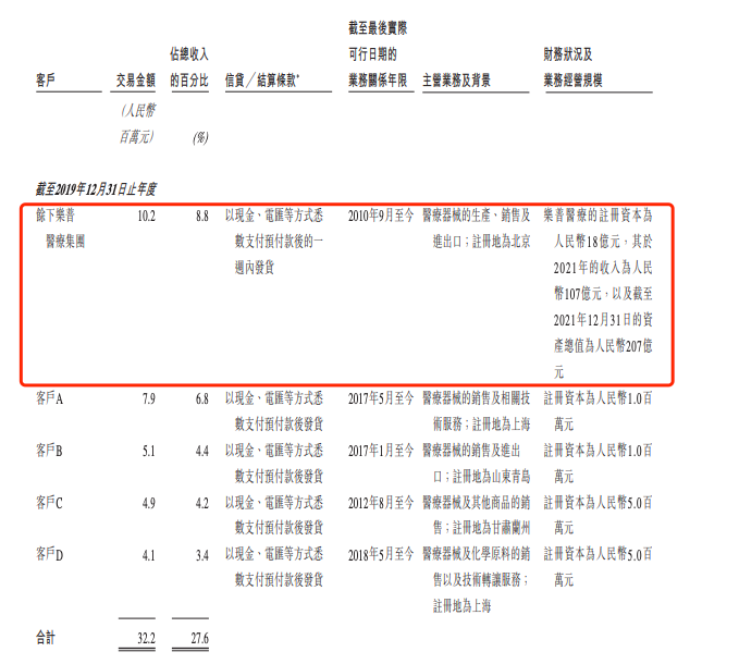 心泰医疗的的客户是经销商,其次是医院。于往绩记录期间,公司的大部分收入来自于销售先天性心脏病封堵器产品及相关手术配套产品。