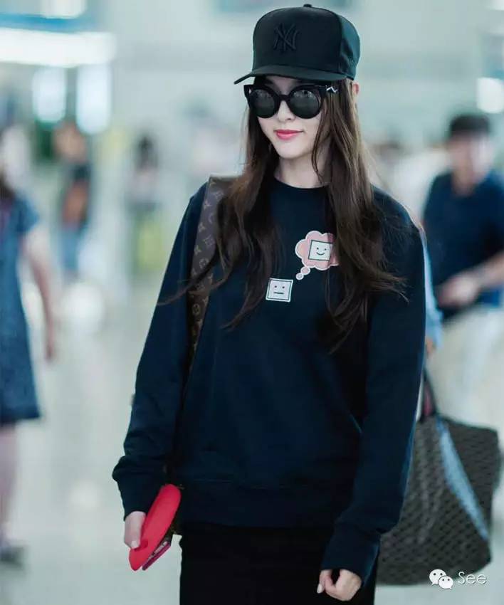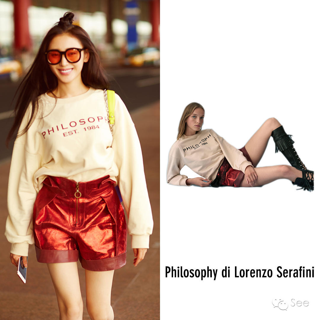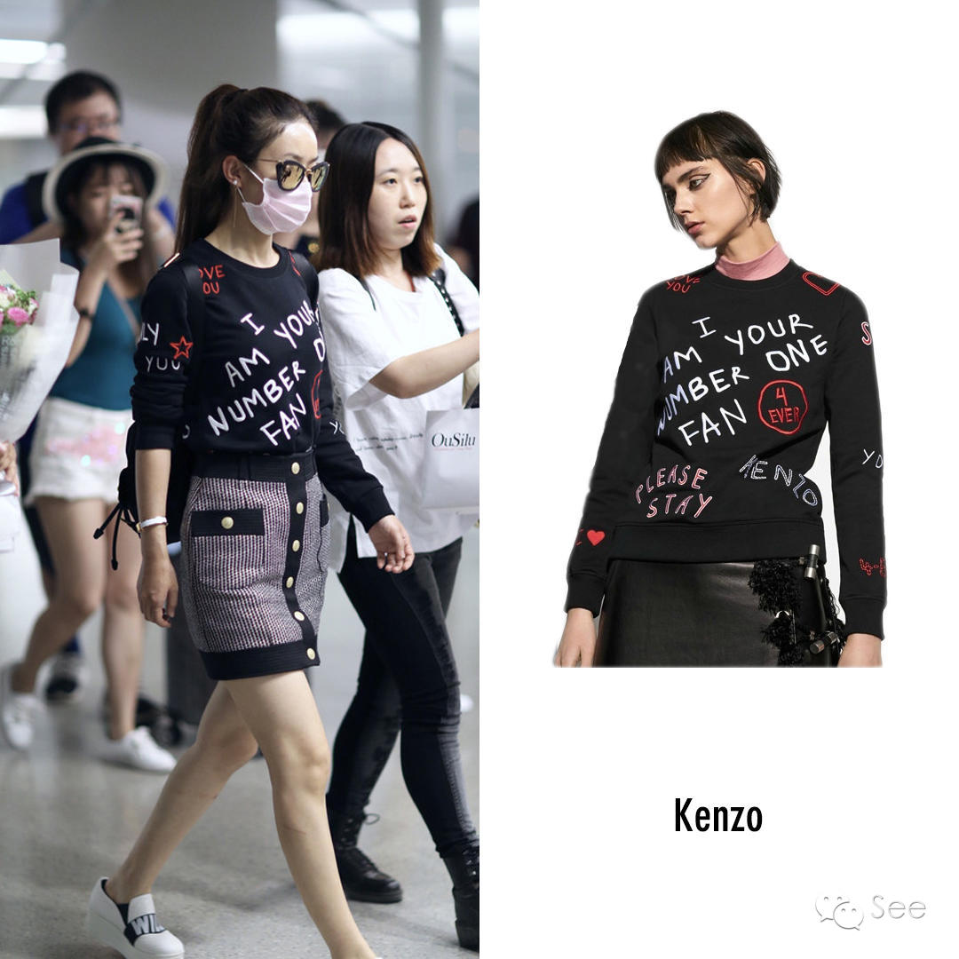 赵丽颖之前穿了一件kenzo家的字母印花卫衣现身机场,配上半裙很有活力。