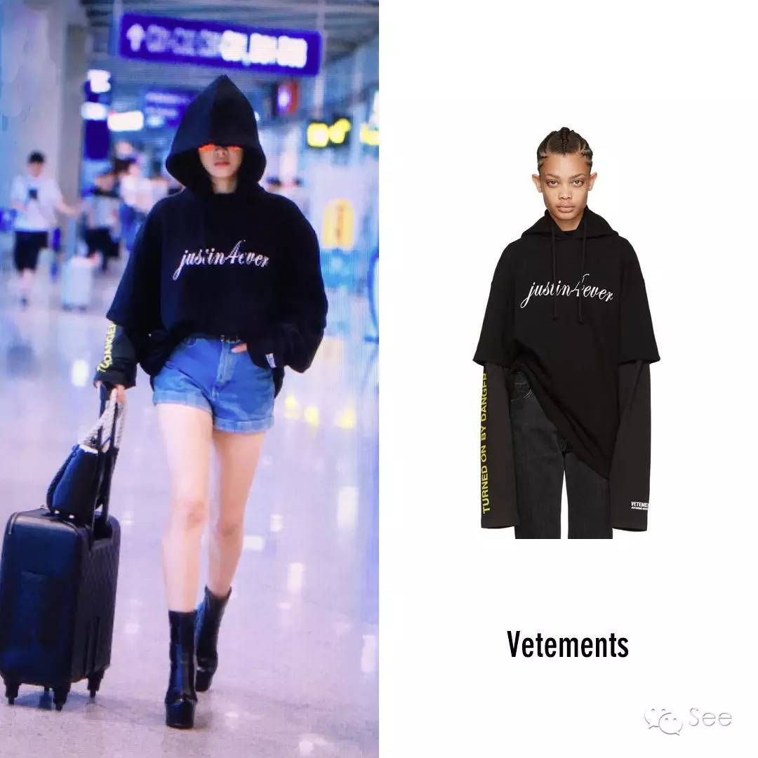 Vetements还玩半截袖子,但也是袖子长到可以唱戏。比如宋茜最近就穿了。