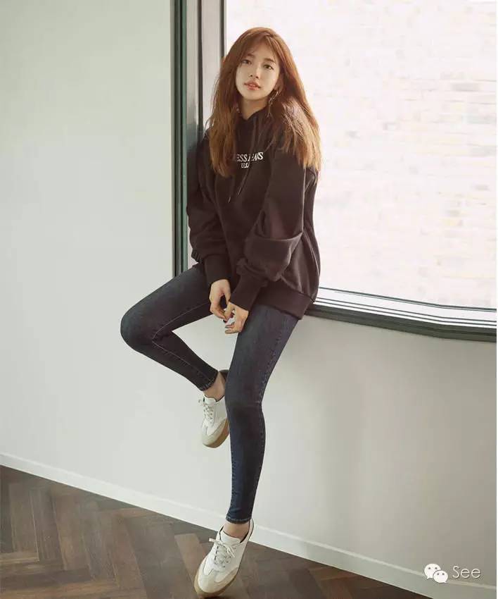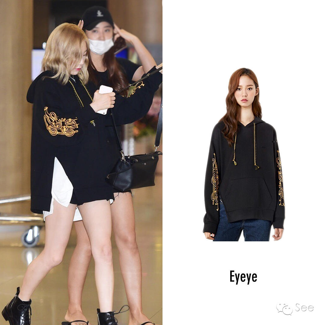 泰妍最新出炉的机场图也穿了连帽卫衣,配上Fendi家的by the way,可以像她这样露腿搭一双踝靴。