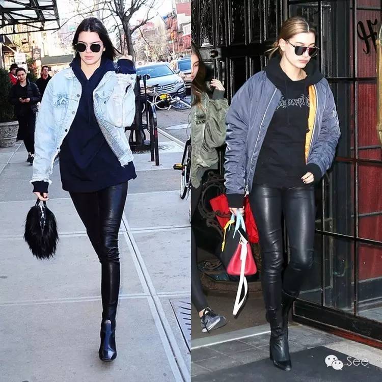 黑色卫衣穿在外套里面:如果再冷一点,用黑色卫衣可以用来做内搭,鞋子适合搭靴子或运动鞋。最喜欢kk的搭配。