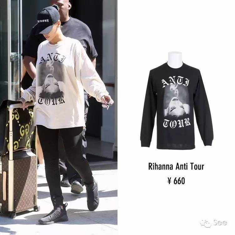 不过日日最近在穿她自己的Anti Tour卫衣,是她上一张专辑《Anti》的周边。