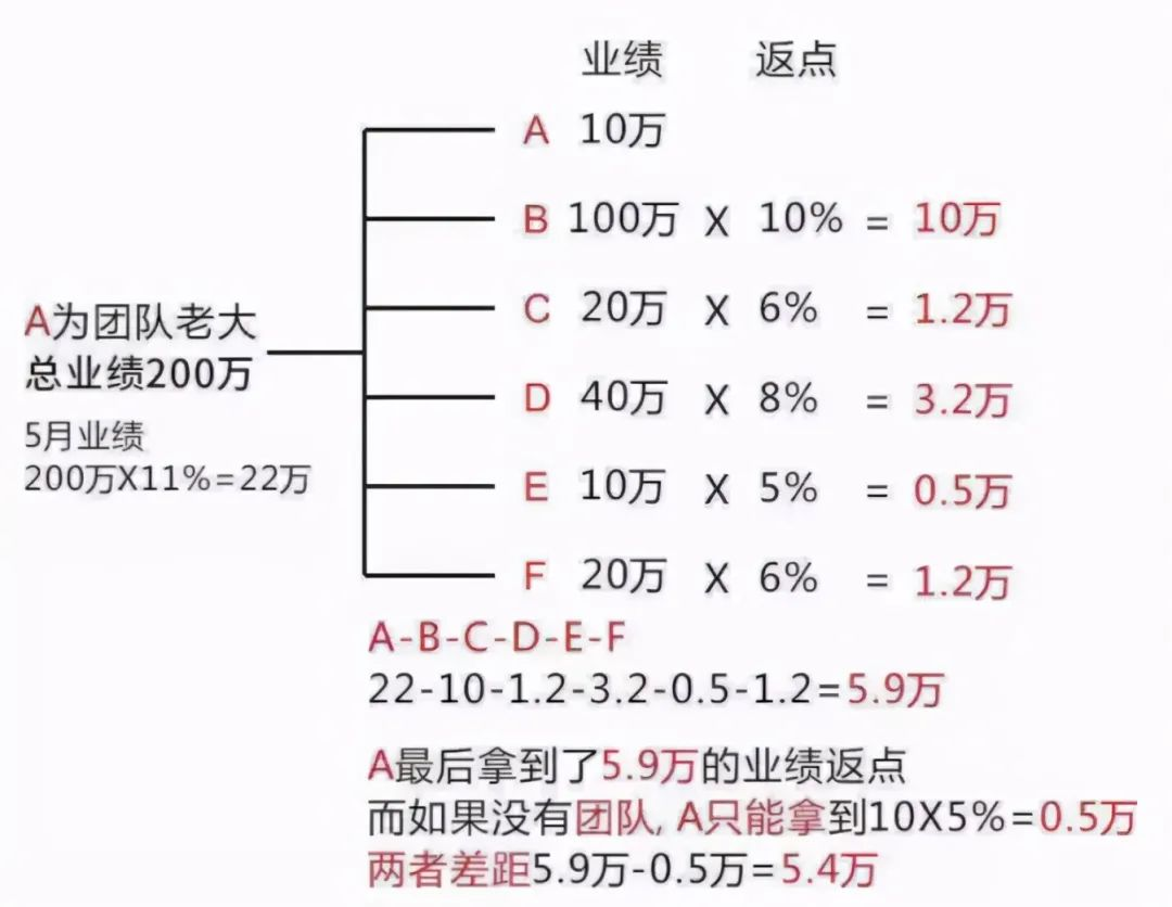 当A用户转发了链接给B用户,产生购买后可以分得一定比例的佣金;当比用户转发链接给C用户,产生购买后A、B都可以获得不同等级的佣金。