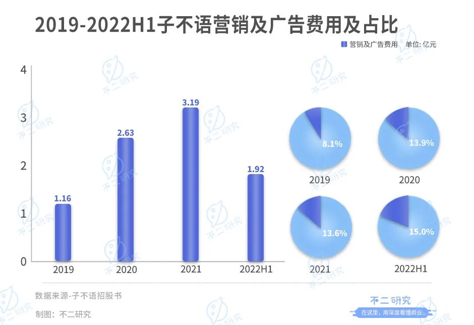 时隔五年,子不语再次站在资本市场的聚光灯下:2019-2021年,子不语营收逐年增加,2020年营收近19亿;但同期的营销费用也逐年增加,2020年的营销及广告费用为2.63亿元。