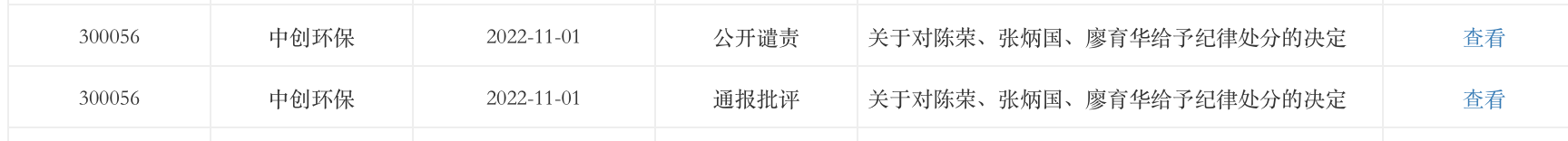 为此,交易所还作出过处分,对陈荣给予公开谴责的处分; 对张炳国、廖育华给予通报批评的处分。对于陈荣、张炳国、廖育华上述违规行为及交易所给予的处分,将记入上市公司诚信档案,并向社会公开。