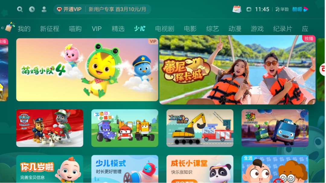 此外,刘燕红还提到OTT大屏中另一个明显的增长点,就是在“双减”政策下,孩子们会在家里看一些英语类的节目,包括一些娱乐和教育结合的少儿节目。“酷喵的少儿类节目的观看量增幅特别大,这一两年,每年都有30%左右的增长。”