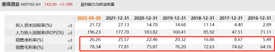 2016年-2022年三季度舍得酒业财务指标,来源:wind