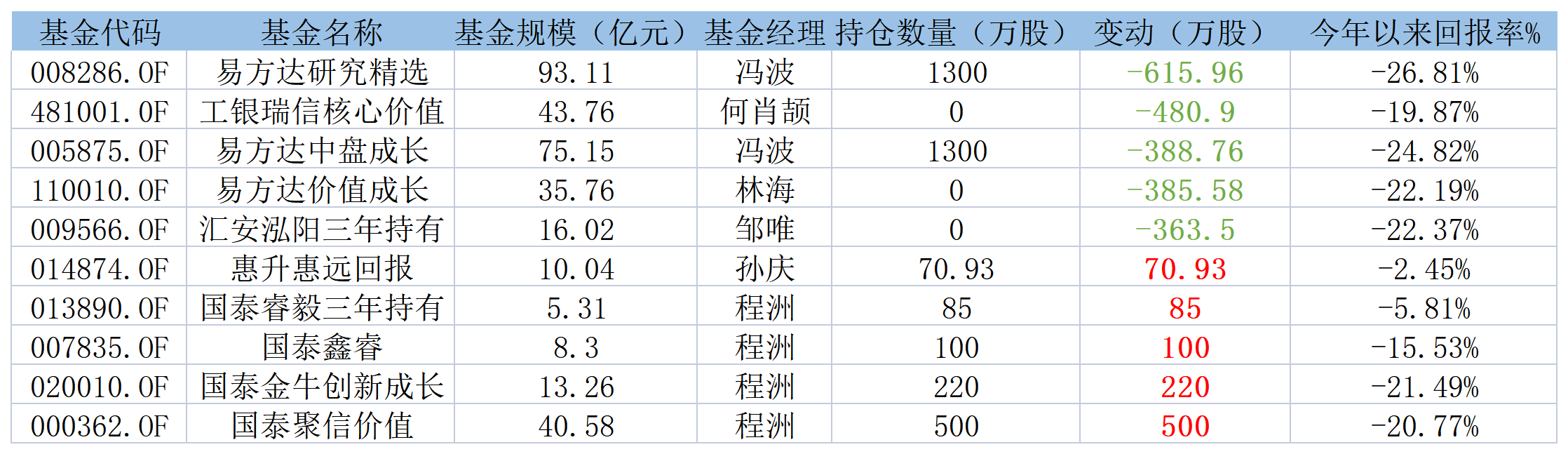 此外,何肖颉管理的工银瑞信核心价值、林海管理的易方达价值成长、邹唯管理的汇安泓阳三年持有,均进行了清仓式减持。