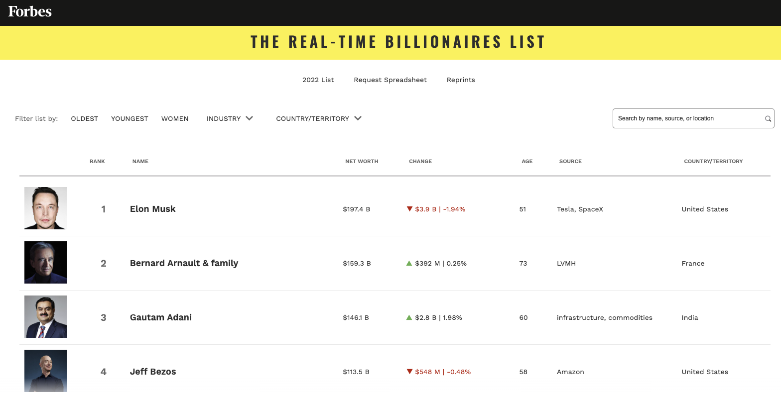 福布斯亿万富豪排行榜显示,特斯拉CEO埃隆·马斯克的净资产已跌破2000亿美元,降至1974亿美元,仍为全球首富。当地时间11月8日,特斯拉收跌2.93%,报191.30美元。自从今年4月他出价收购推特以来,特斯拉的市值已经蒸发了近一半,他的净资产也减少了700亿美元。