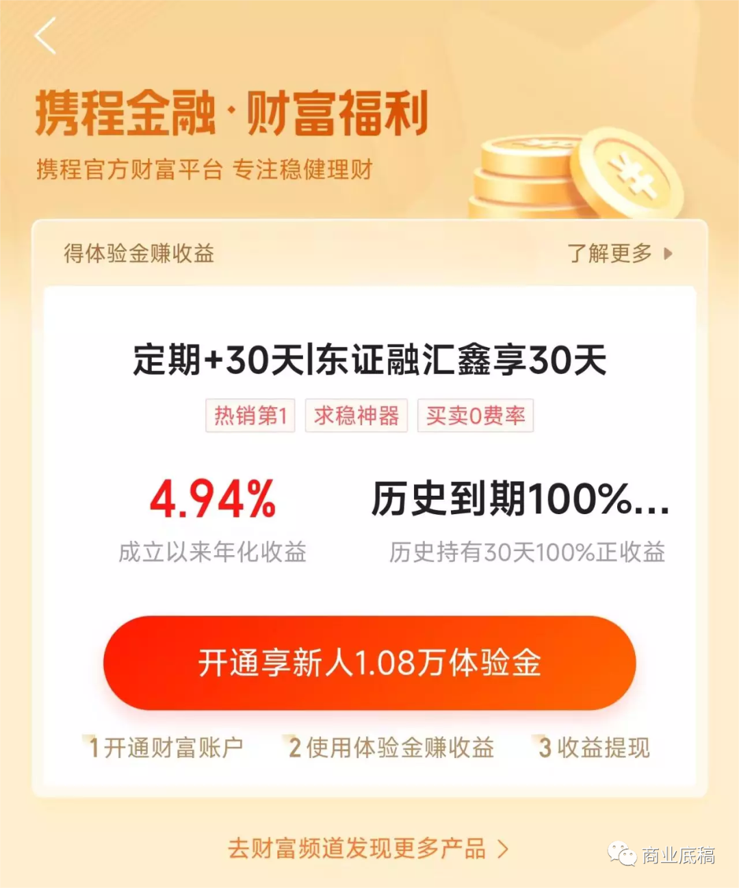 虽然在相关部门的努力下,一场巨大风波平息。再看若无其事的携程金融,如今仍在其页面上标榜“携程官方财富平台,专注稳健理财”的字眼,就显得有些刺眼——较高的年化收益,仍是携程金融吸引资金的主要手段。