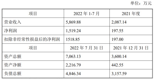 2022年1-7月,晶熠阳营业收入5869.88万元,相当于上一年度全年收入的2.81倍,扣非净利润1518.85万元,相当于上一年度的7.71倍。不管是先前基数较小,还是2022年晶熠阳使用负债杠杆来扩大经营规模,都导致其成立不久就收获“业绩爆发”。