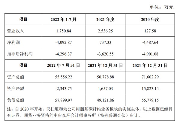 天仁道和在2020年度、2021年度及2022年1-7月的扣非后净利润分别为-4901.08万元、-3620.55万元和-4296.37万元,合计亏损1.28亿元,但是这期间实现的营业收入合计只有0.44亿元。营业收入远不够亏的。