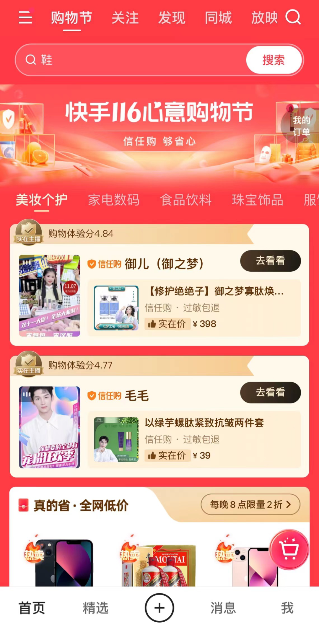 只不过这一次合作,远没有此前密切。首先商品品类上就有诸多规制,有天猫和京东自营商品的链接能在快手直播间上架,淘宝个人店铺并不能。