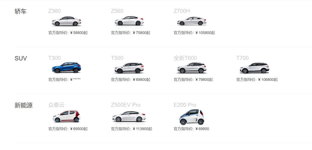 在2010年前后,众泰汽车持续扩张,先后又买下了南京菲亚特的派力奥、西耶那和梦迪博朗生产线,吸纳了原比亚迪销售公司的总经理夏治冰加入众泰,相继推出了众泰Z300、Z100、T600、T200、Z500、Z700等车型。