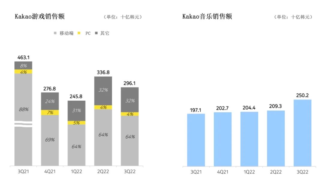 Kakao内容部门的其他版块则整体呈现出增长的发展势头。