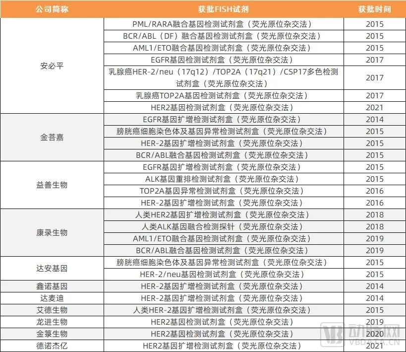 FISH技术用于伴随诊断获批试剂统计(数据来源:国家药监局)