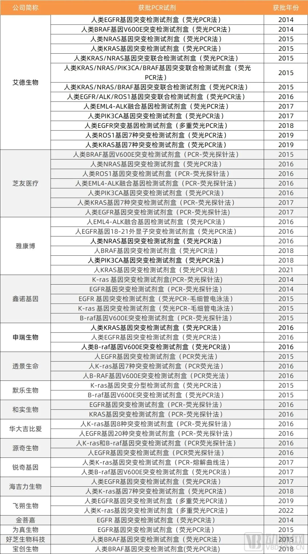 PCR技术用于伴随诊断获批试剂统计(数据来源:国家药监局)