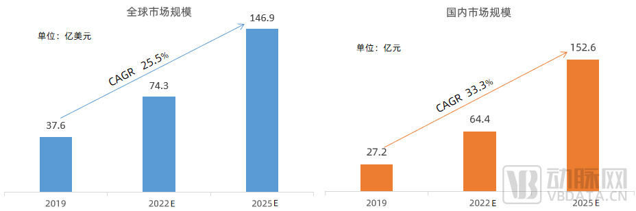 2019年我国伴随诊断的市场规模达27.2亿元,规模增速逐年攀升,2016至2019年的年复合增长率为33.3%。按33.3%的增速估算,2022年我国伴随诊断的市场规模为64.4亿元,2025年为152.6亿元。