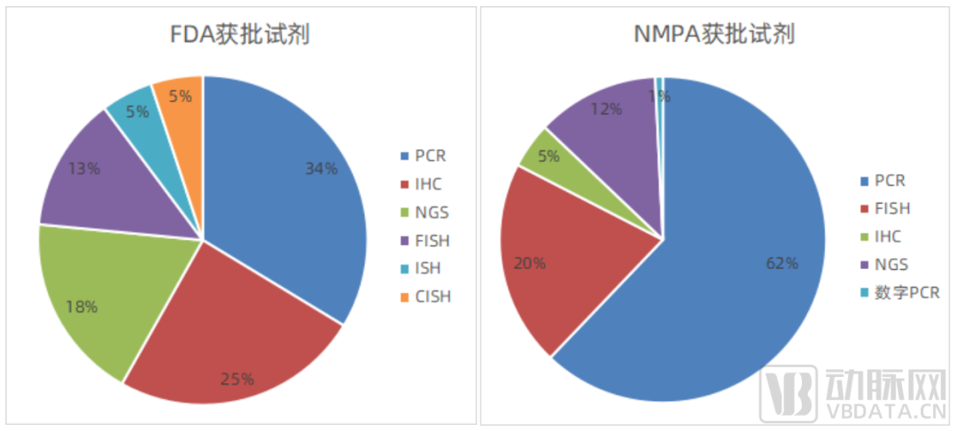 FDA和NMPA获批试剂技术占比统计(数据来源:国家药监局)