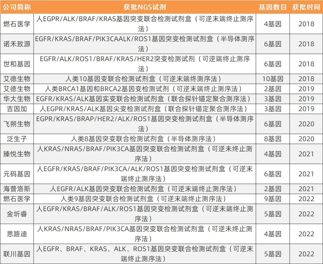 NGS技术用于伴随诊断获批试剂统计(数据来源:国家药监局)