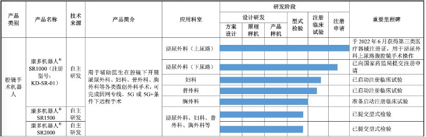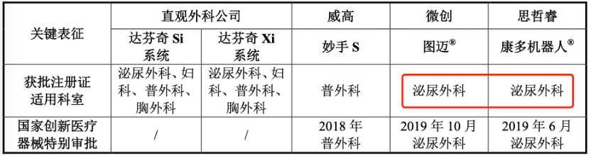 从获批注册证角度,思哲睿与微创的手术机器人都是适用于泌尿外科,威高妙手-S适用于普外科。目前思哲睿获批的型号是康多机器人SR1000,根据披露,该产品今年8月完成前列腺癌根治术(GALRP)的临床试验,并已向国家药监局提交注册申请。