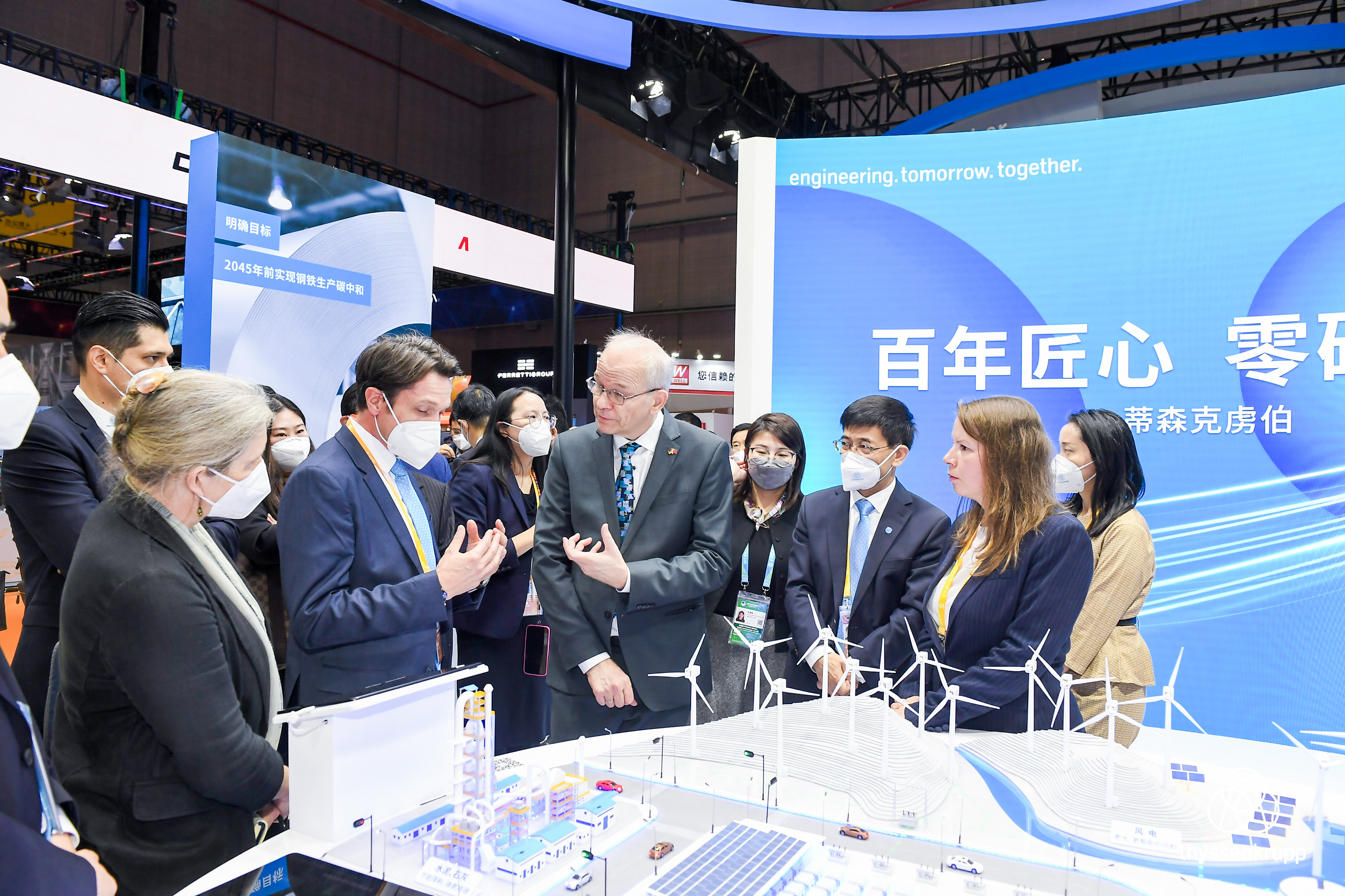 在本届进博会展台上,蒂森克虏伯首次面向中国观众展示了2045年前实现钢铁生产碳中和的目标和技术路径。