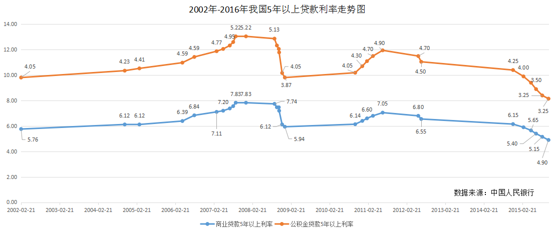 信贷环境影响买房时的投入成本。目前,北京信贷环境宽松,从2015年到现在,央行连续5次降息降准,公积金贷款利率3.25%,商业贷款利率低至4.9%,各银行还有利率优惠。下图是2002年-2015年利率水平走势图,从图中可以看出,目前我国信贷环境宽松,无论商贷还是公积金贷款,皆处于历史最低水平。