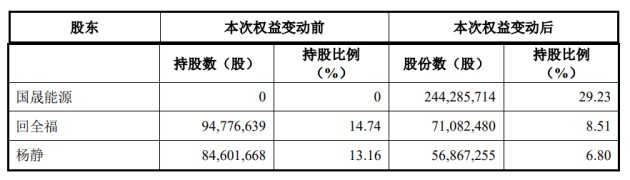 如果本次股份转让顺利完成,回全福持有乾景园林的股份将减少至7108.25万股(占总股本8.51%),杨静持有的股份将减少至5686.73万股(占总股本的6.80%),国晟能源将持有5142.86万股;同时,国晟能源拟以现金认购乾景园林非公开发行的1.93亿股股票。交易完成后,国晟能源预计将持有乾景园林合计2.44亿股,持股比例将达到29.23%,将成为乾景园林的控股股东。乾景园林的实控人也将发生变更。