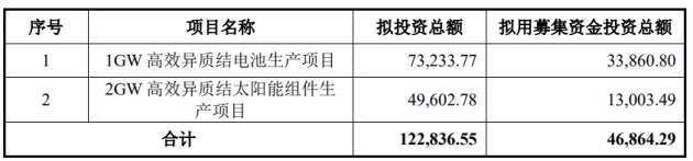 根据公告,本次乾景园林向国晟能源发行股份所募集的资金不超过4.69亿元,扣除发行费用后拟全部用于“1GW高效异质结电池生产项目”及“2GW高效异质结太阳能组件生产项目”。这两个项目拟投资总额为12.28亿元。