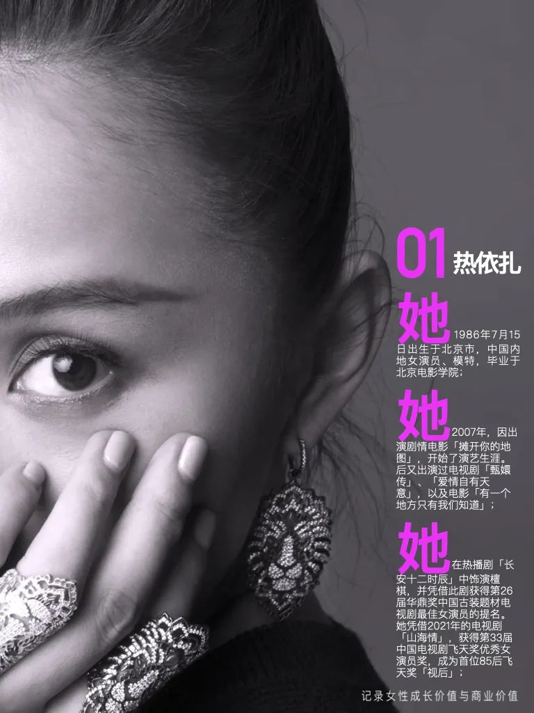 她,在热播剧「长安十二时辰」中饰演檀棋,并凭借此剧获得第26届华鼎奖中国古装题材电视剧最佳女演员的提名。她凭借2021年的电视剧「山海情」,获得第33届中国电视剧飞天奖优秀女演员奖,成为首位85后飞天奖「视后」。