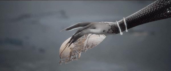 同时面具作为贯穿整个PV的存在,在最后一段的打斗演示中,对打双方的形象和武器招数,都会随着“戴面具”这一动作而变化,展现出了十分多变的打斗场景,除了在剧情和世界观中它是人物信念的载体,在游戏的另一重头戏动作设计里,它也是不可或缺的关键创意。