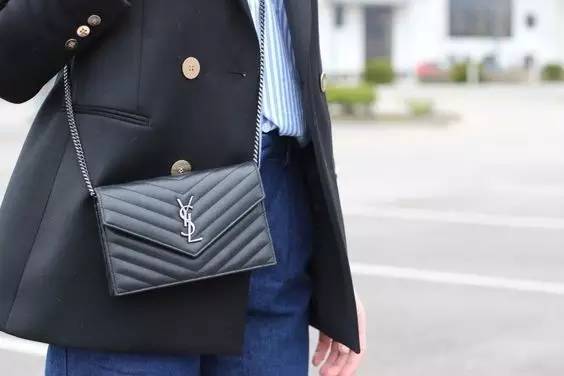 Saint Laurent的这款Chain Wallet 也是街拍中常见到的款式之一,经典的monogram金属配件,简约易识别,其中,黑色是大多数人会选择的颜色,出镜率最高,因为搭配起来真的很方便。