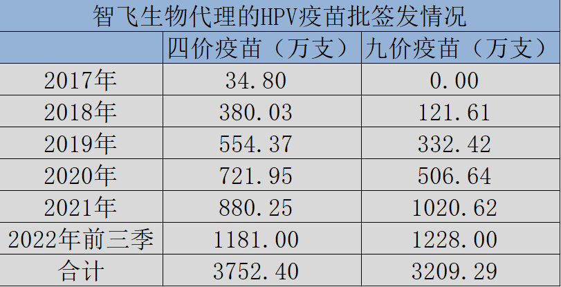 图:智飞生物代理的HPV疫苗批签发情况,来源:公司财报