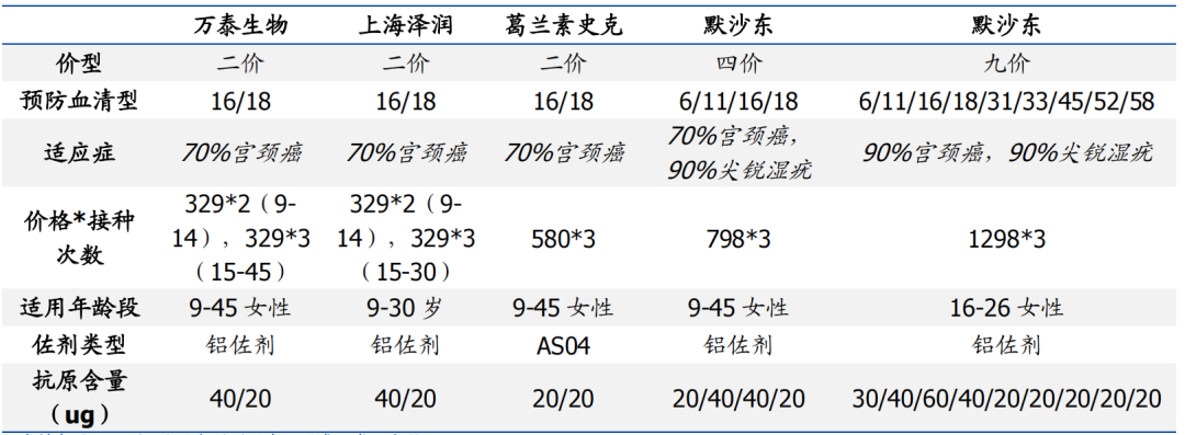 图:目前已上市销售 HPV 疫苗对比,来源:国盛证券