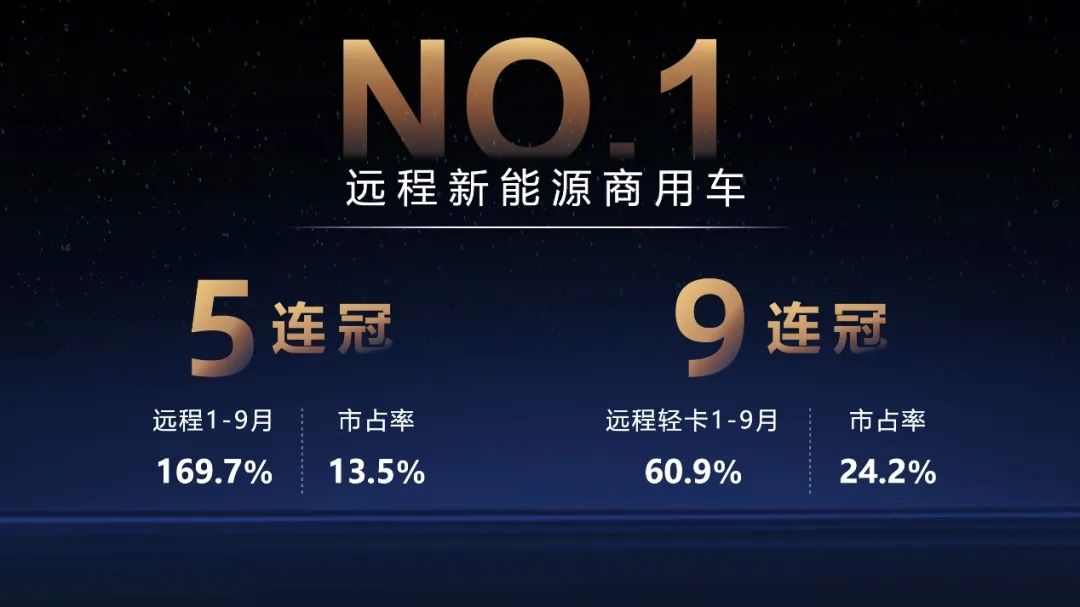 远程公布的销量数据显示,今年1-9月,远程新能源商用车同比增长169.7%,总体累计销量行业第一。远程新能源轻卡1-9月累计销量同比增长60.9%,市占24.2%位列第一。