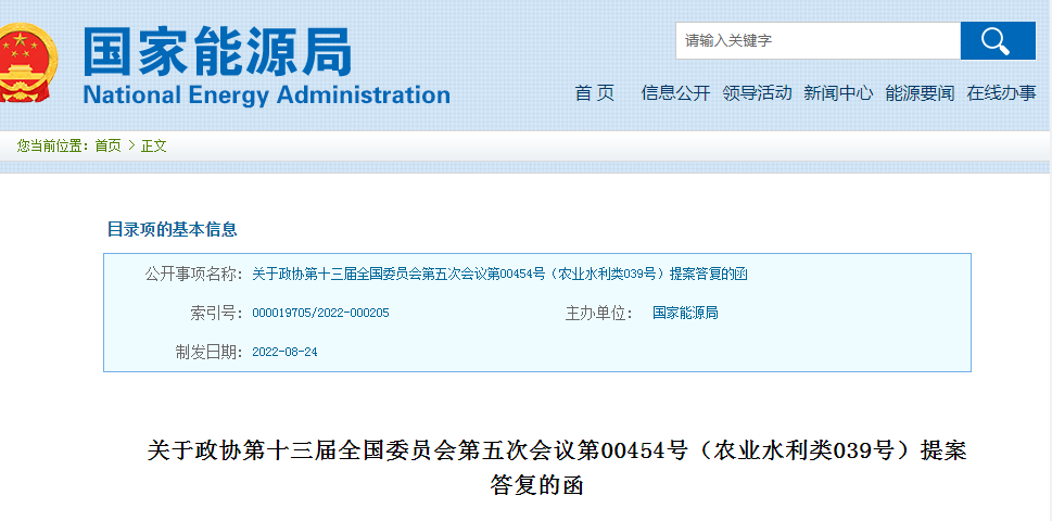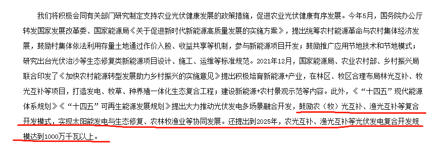 8月24日,国家能源局在关于政协第十三届全国委员会第五次会议第00454号(农业水利类039号)提案答复的函中提到:将会同自然资源、林草等有关部门出台农业光伏、林业光伏等各类复合项目的建设标准规范,不断完善相关用地政策,确保在严格保护耕地的前提下,提高低产耕地农业利用价值,促进土地高效复合利用,推动农业光伏健康有序发展。