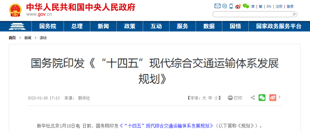 2022年1月18日,国务院下发《“十四五”现代综合交通运输体系发展规划》,明确指出,鼓励在交通枢纽场站以及公路、铁路等沿线合理布局光伏发电设施,让交通更加环保,出行更加低碳。