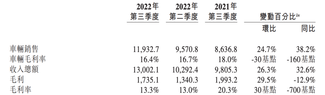 本季度毛利率为13.3%,较去年同期的20.3%下降明显。车辆毛利率为16.4%,较去年同期的18%有所下滑,主要原因是电池成本上涨。