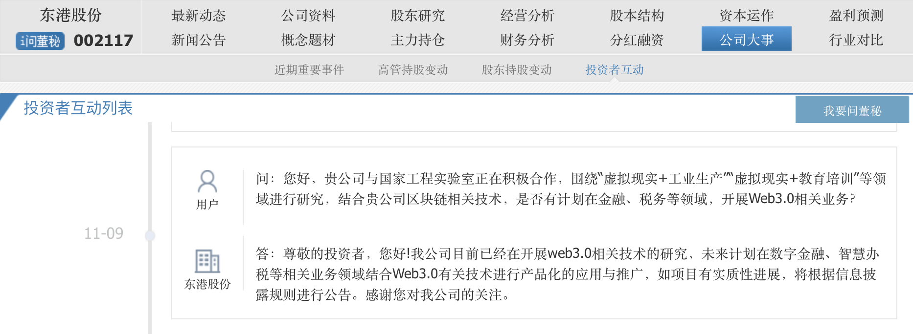 东港股份的主要业务分为印刷类业务,覆合类业务和技术服务类业务。公司同样在互动平台上表示目前已经在开展web3.0相关技术的研究。