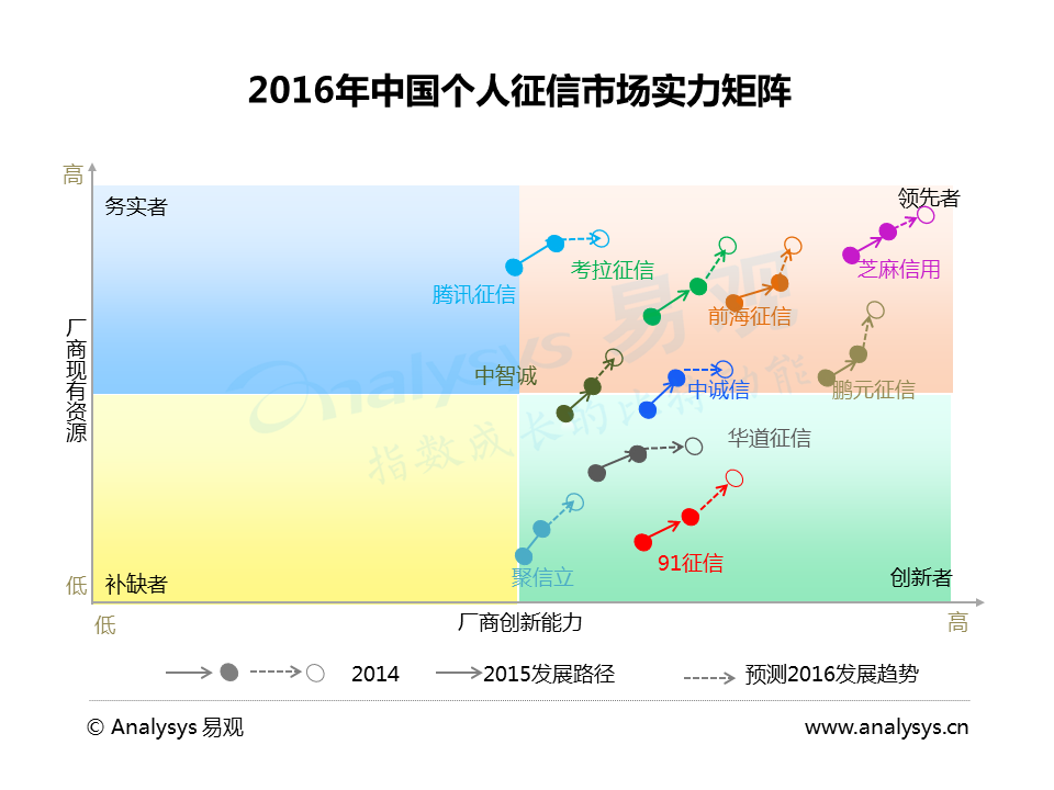 创新者:这类企业,为创业公司或老牌征信公司下的个人征信业务,多数利用自身优势,采用模式创新,深耕特定领域。