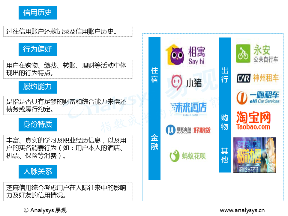 领先者:以芝麻信用、腾讯征信等为代表的企业身处领先者的位置,这类企业依托产业资本和股东背景,有着自身庞大的数据源,同时利用机器学习、随机森林等先进的大数据算法,进行多场景应用。