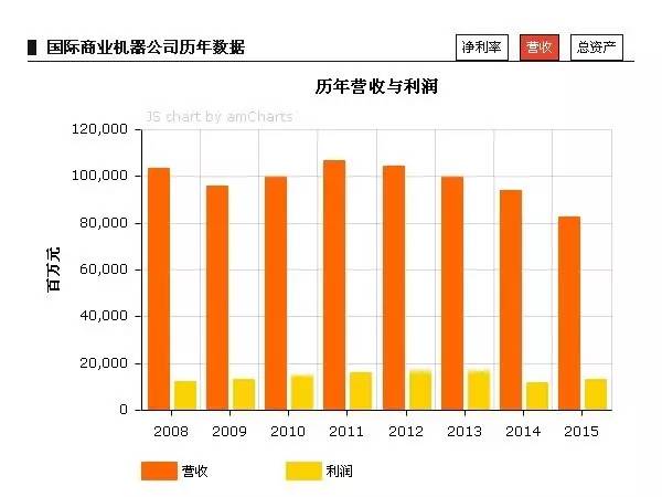 从2011年到2015年,IBM的年营收持续下滑,到2015财年,IBM的营收已经被软件巨头微软超过。在2016年《财富》世界500强排名上,IBM公司已经跌至第82名。不过,IBM公司的盈利水平一直还比较稳定。