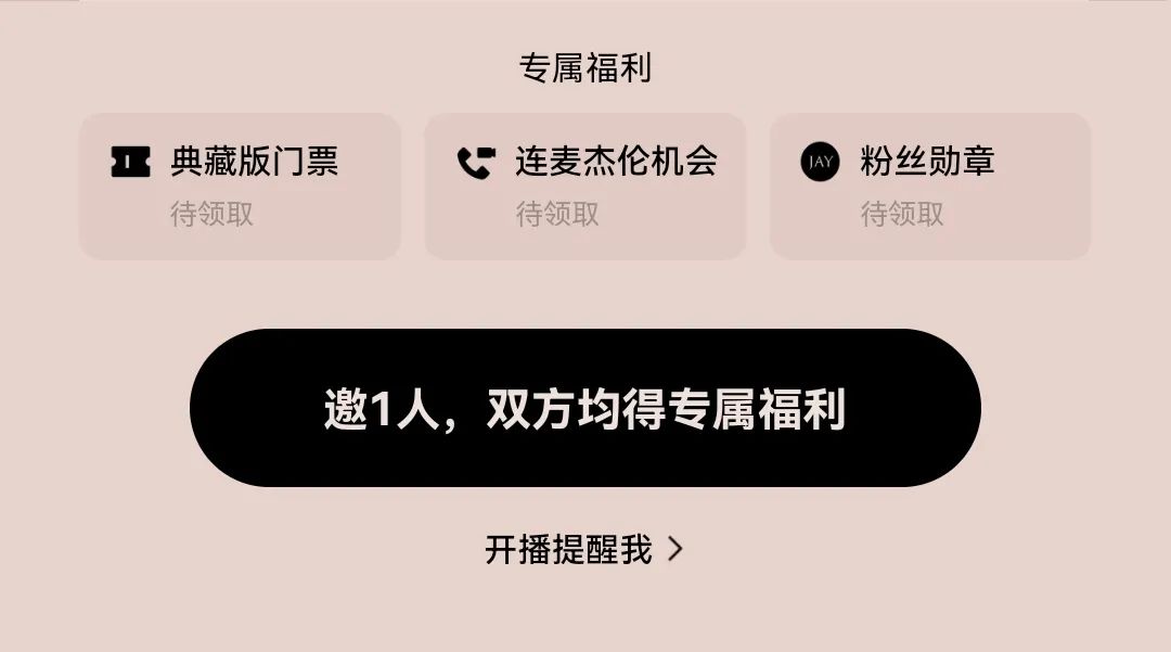 与以往线上演唱会不同,这次快手周杰伦哥友会增加了一些社交属性,具体表现在如“邀请1位好友,双方均可获得专属福利”和“邀好友领票数”等活动。从中也透露出短视频平台对于社交功能的不断摸索和勃勃野心。