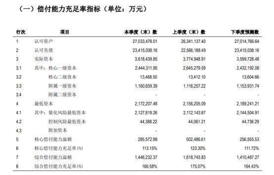 三季度,受资本市场波动影响,国华人寿实际资本为361.84亿元,较上季度末下降15.65亿元,而最低资本为217.22亿元,较上季度末增加1.6亿元。