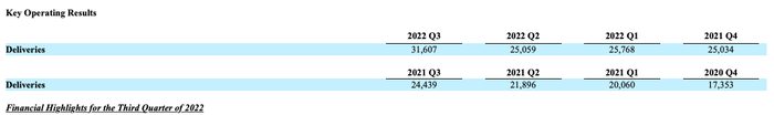 2022年Q3,蔚来的实际交付量为3.16万辆,同比增长29%,但整体处于交付指引的下限。2022年Q4,蔚来也开局不利,10月交付量为10059辆,环比减少819辆。截至目前,蔚来今年前10个月累计交付新车9.24万辆,同比增长32%,其中,单月最高交付量仍停留在6月份的12961辆。