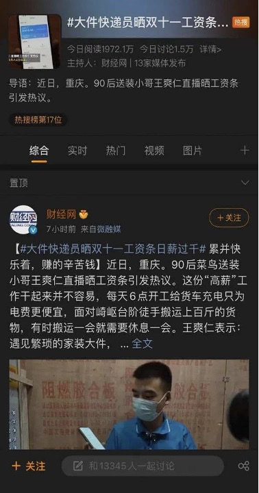 每天,王爽仁都会早早起床,赶在凌晨6点去给他的货车充电,只因为那时电费更便宜。他的送货之路从1200多平方米的仓库开始,驱车几十公里去往主城区。这天,他在直播间不经意晒出的“日薪上千”的工资条,忽然让网友连连感叹“快递小哥治好了我的精神内耗”“付出会有收获”,该话题也很快冲上微博热搜榜。