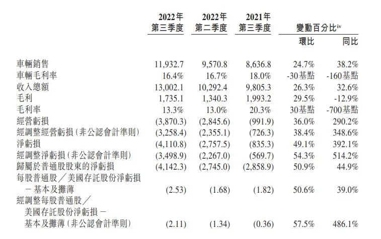 营收增加,亏损进一步扩大。蔚来三季度净亏损41.1亿元,与上年同期相比增亏392.1%,与上一季度相比增亏49.1%。相当于每卖一辆赔13万元。