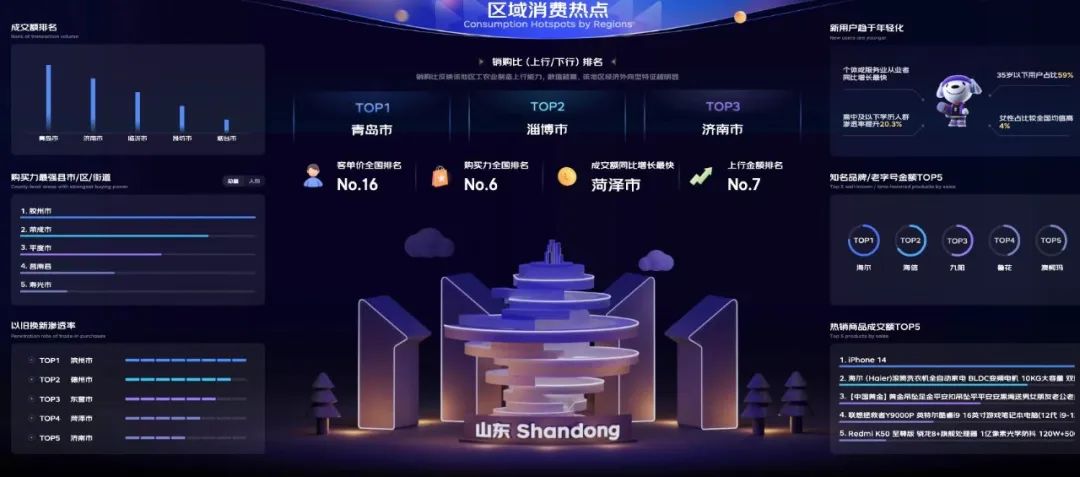 ■ 从京东成交额来看,购买力TOP 5:青岛市、济南市、临沂市、潍坊市、烟台市;